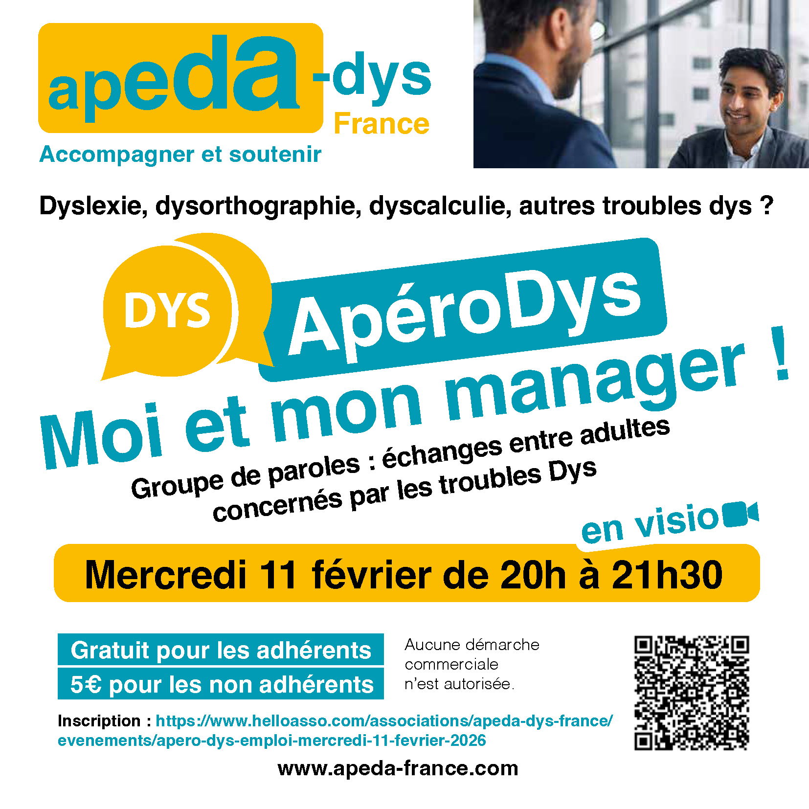 APEDA-Dys France, association de parents et d’adultes dyslexiques bénévoles, vous informe et vous accompagne.